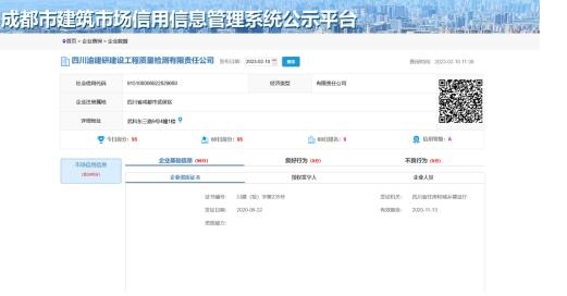 根據(jù)2021年印發(fā)的《成都市建設工程質量檢測機構及檢測人員信用評價管理辦法》,成都市建筑市場信用信息公示平臺綜合考慮檢驗檢測機構在經(jīng)營期間各項表現(xiàn),對獲得表彰、人員管理、設備管理、檢驗檢測環(huán)境管理、檢測能力驗證、檢測報告管理、資質運行等26個項目進行評價,力求全面客觀評價檢驗檢測機構綜合能力。信用評級結果分為4類,最高等級為A類,表示誠信度較高、各項評價指標較好、質量管理水平較好、社會信譽較高。