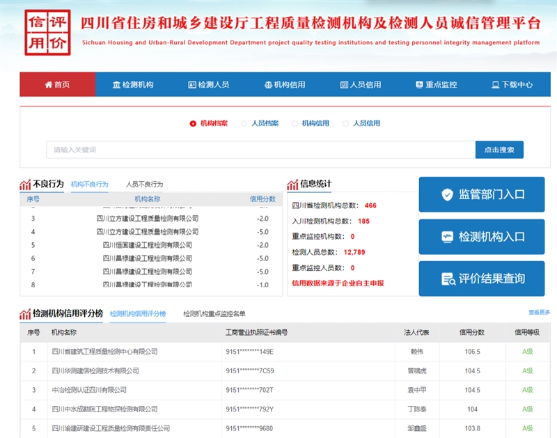近日,四川省住房和城鄉建設廳工程質量檢測機構及檢測人員誠信管理平臺發布最新綜合排名,重慶設計集團市建科院公司所屬子企業——四川渝建研建設工程質量檢測有限責任公司(簡稱“四川渝建研公司”)在全省466家檢測機構中脫穎而出,成功躍升第5名,并獲得A級信用評級。