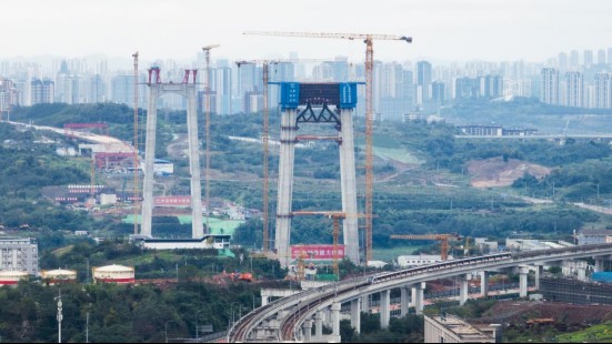 11月26日,隨著北岸主塔澆筑完成,由重慶市建筑科學(xué)研究院有限公司承擔(dān)監(jiān)理的市級(jí)重點(diǎn)項(xiàng)目——渝長(zhǎng)高速?gòu)?fù)線連接道工程(海騰立交—南橋頭立交)黃桷沱長(zhǎng)江大橋主塔全部封頂,該橋是目前世界最大跨徑公軌兩用懸索橋。