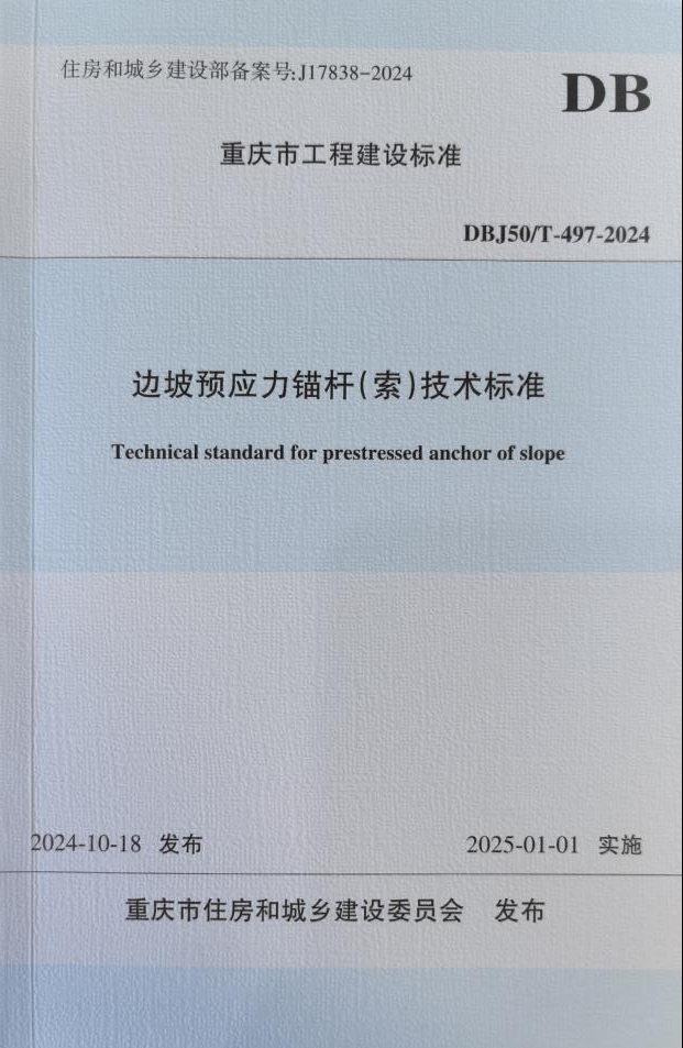 作為主編單位,在標(biāo)準(zhǔn)編制過程中,市建科院調(diào)查總結(jié)了近年來重慶市在邊坡預(yù)應(yīng)力錨桿(索)設(shè)計、施工、檢測、監(jiān)測及質(zhì)量驗收的工程經(jīng)驗,參考了國內(nèi)有關(guān)技術(shù)標(biāo)準(zhǔn),吸收了國內(nèi)外相關(guān)科技成果,開展了多項專題研究,并在重慶市范圍內(nèi)廣泛征求了有關(guān)單位的意見,經(jīng)反復(fù)討論、修改、充實,最后經(jīng)審查定稿。標(biāo)準(zhǔn)的正式施行,是對公司在邊坡預(yù)應(yīng)力錨桿(索)方面技術(shù)實力的肯定,彰顯了公司在該領(lǐng)域中的技術(shù)引領(lǐng)地位,對提升邊坡預(yù)應(yīng)力錨桿(索)技術(shù)水平影響力方面具有重要意義。