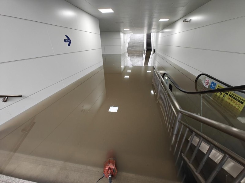 某區多處地下通道因暴雨大量積水無法通行,市建科院技術人員積極配合相關維保單位,利用專業設備進行緊急抽排作業,助力地下通道盡快恢復通行能力。