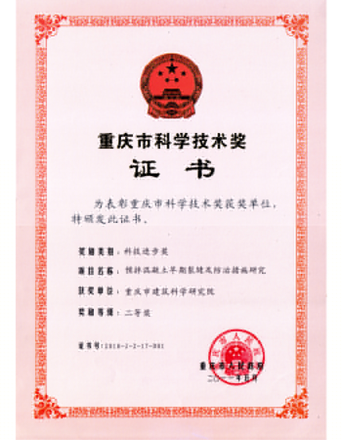 • 重慶市科技進步二等獎